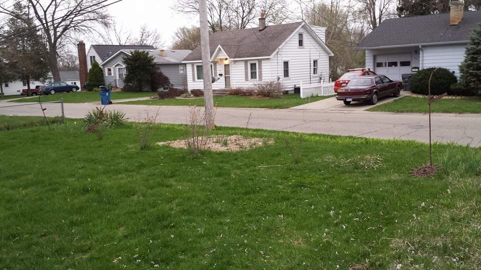 Eventually, I wanted to expand my gardening space, and began reading up on how I could repurpose the blank canvas of my lawn. I had a little garlic bed out front, but it seemed like a heck of a waste of space, plus I’m not a giant fan of cutting grass. Neither am I a giant fan of the oil and gas combination engine. Gadgetron can and does tell a particularly hilarious story of how I thought a lawnmower took a quart of oil. But I digress. This is what I started with: