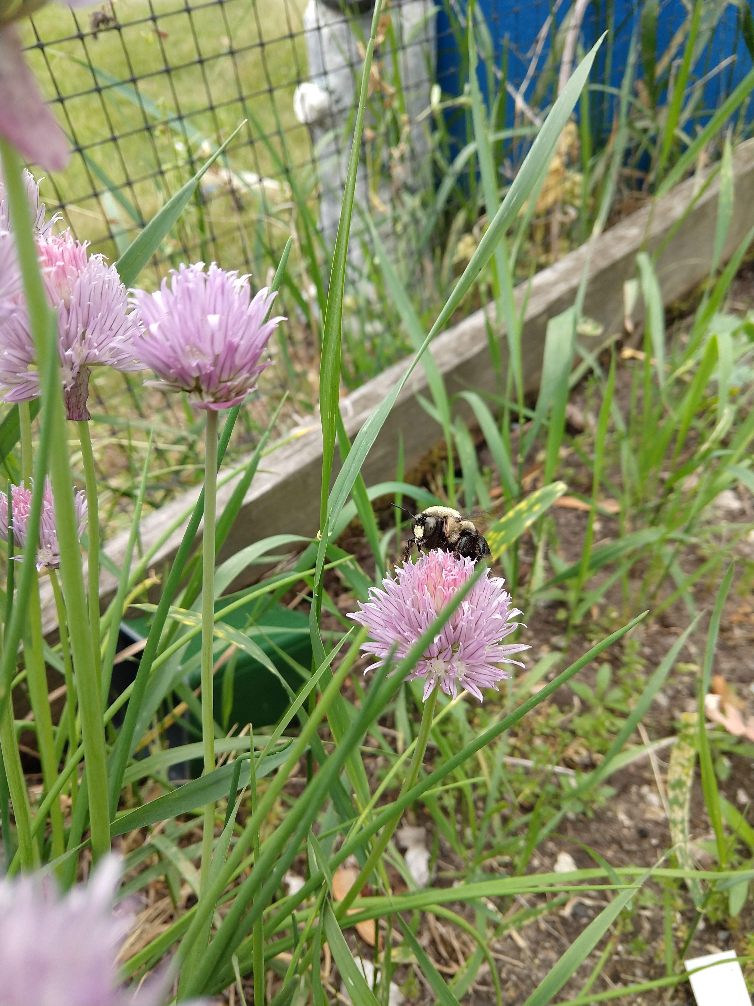 While I was planting, I was joined by this little pollinator friend in the chives. I have a huge amount of big bumbling carpenter bees, and I’m totally entranced by their chill demeanor and aerial grace. I like to lay in the hammock and watch their little air shows.