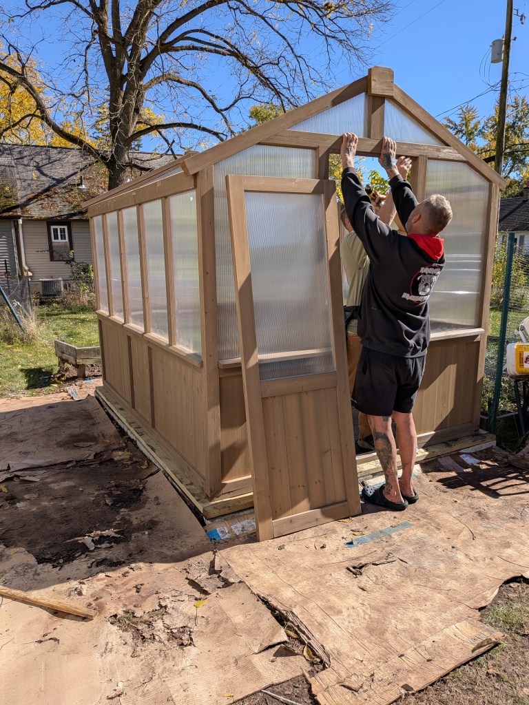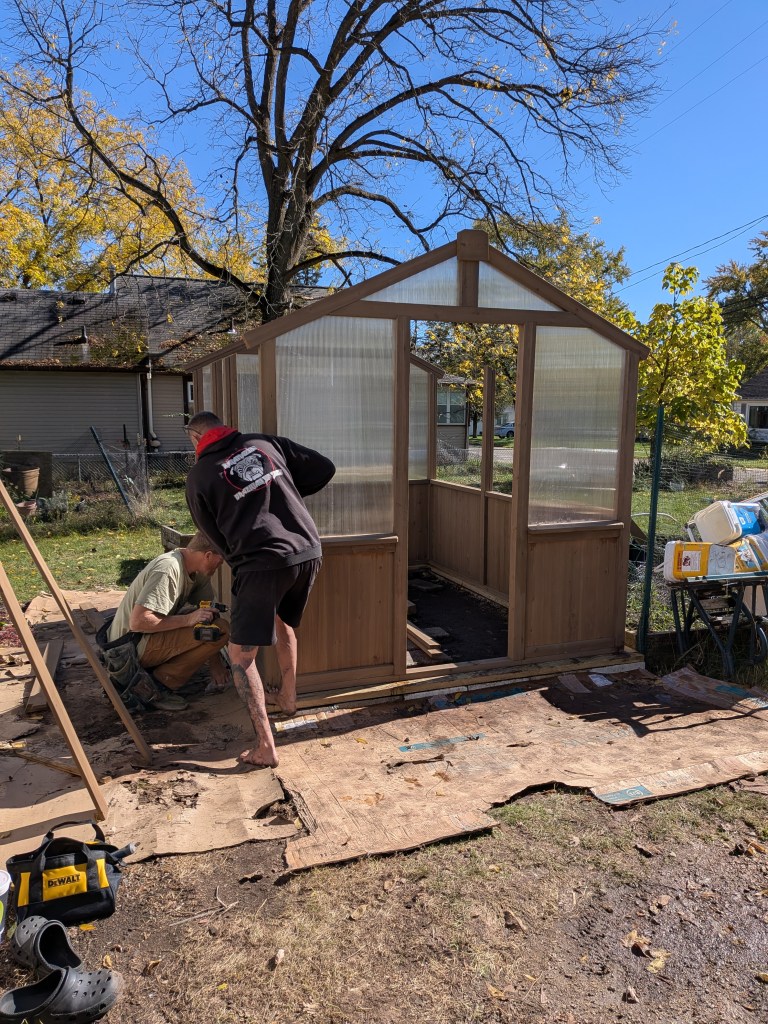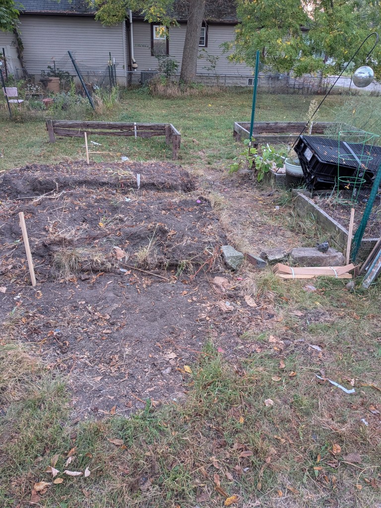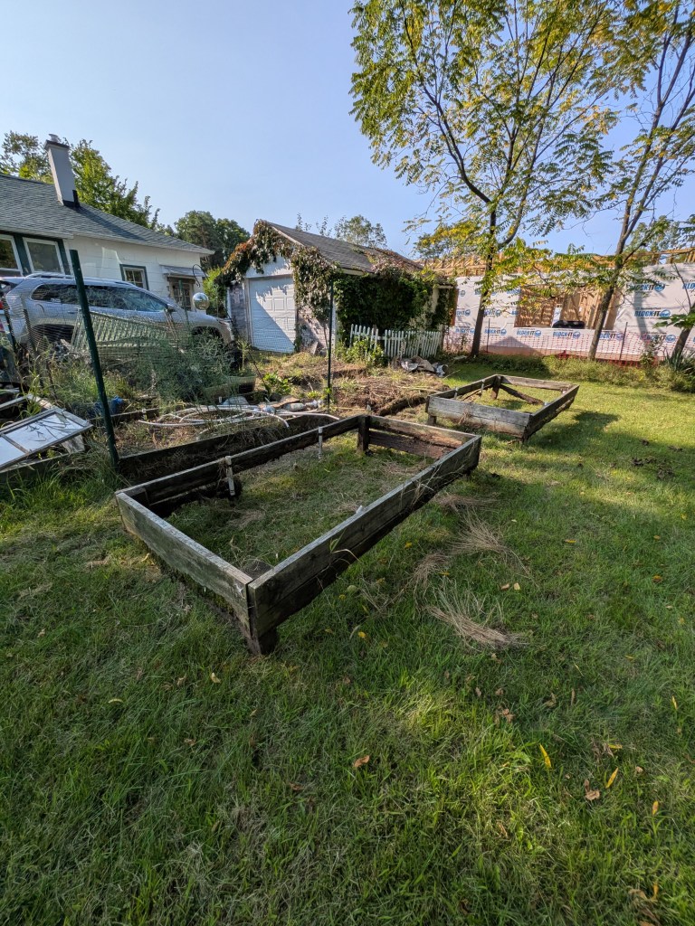 Things got underway on 9/8/25 with a good pal donating labor to get the site prepped. Those of you who have been to the Not So Seekrit Lair have seen my raised beds. I took two of them out for the greenhouse foundation. Not bad, after 20 some years, but still, unable to be rehabbed.
