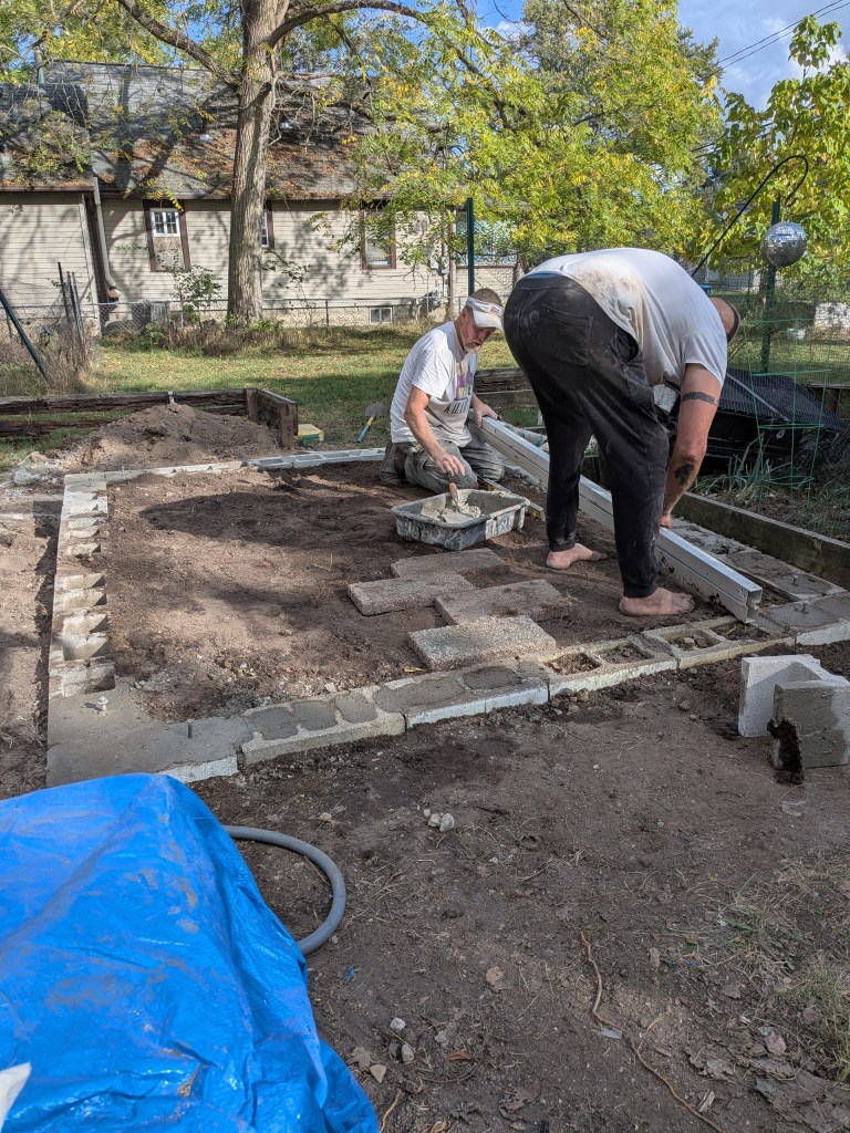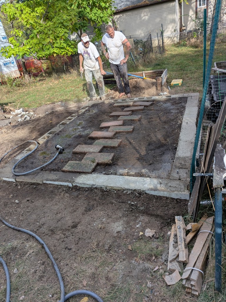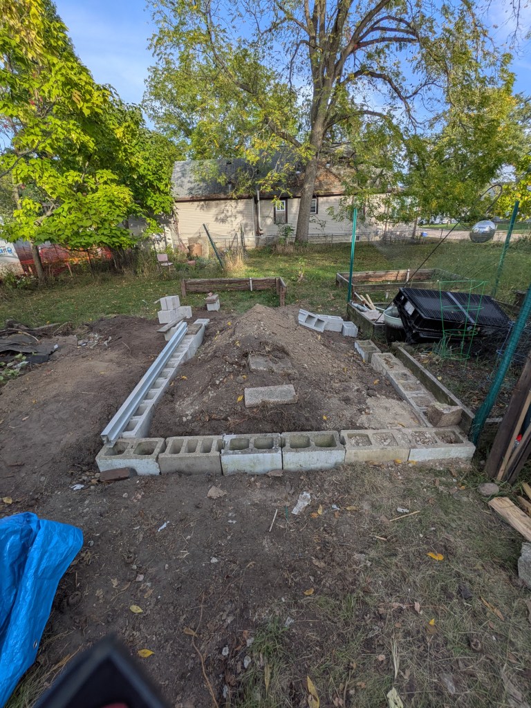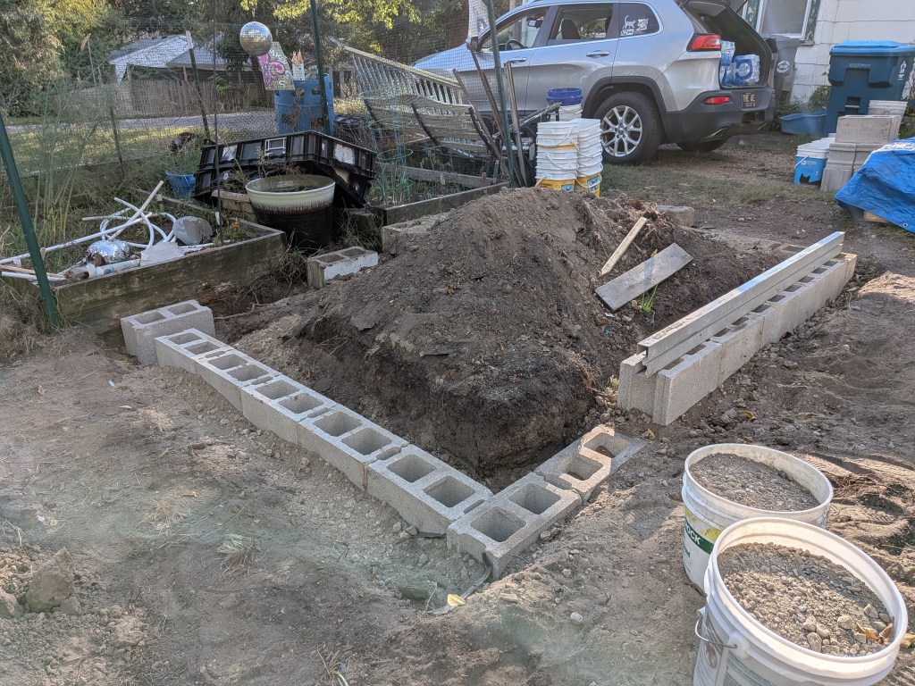 Then came the foundation from 9/24/25 to 10/10/25! We used concrete blocks in trenches filled with stabilized gravel. The work was supervised by Aca, who is such a good doggo!