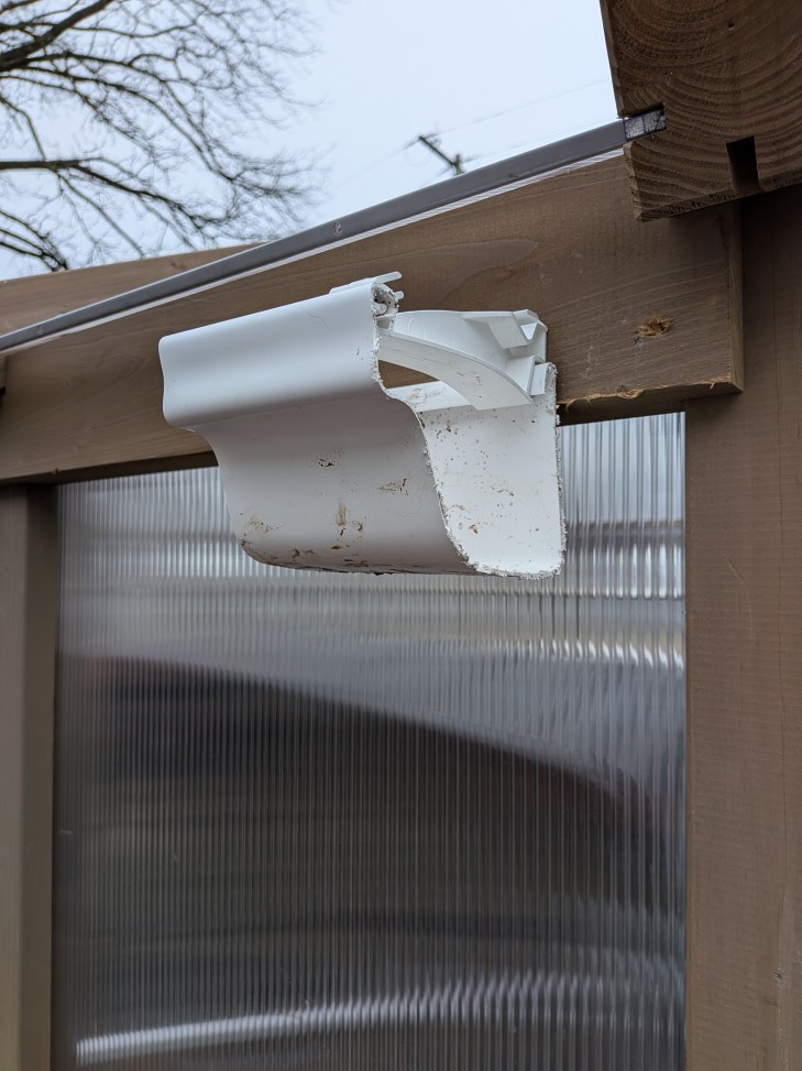 I installed these gutters so the greenhouse roof could feed a rainwater harvesting system.