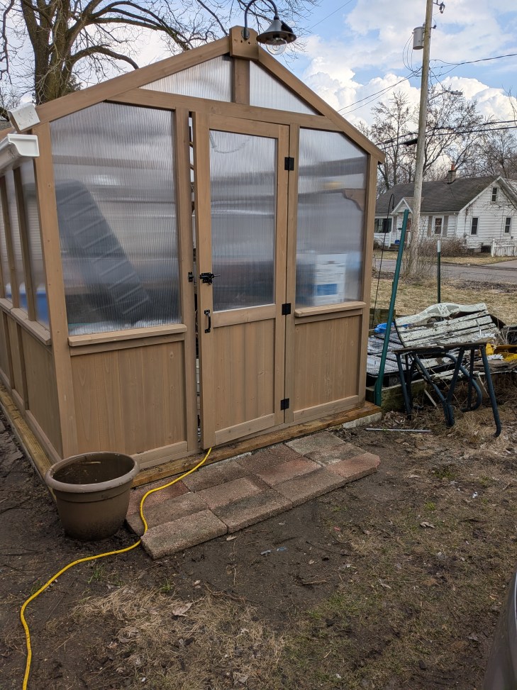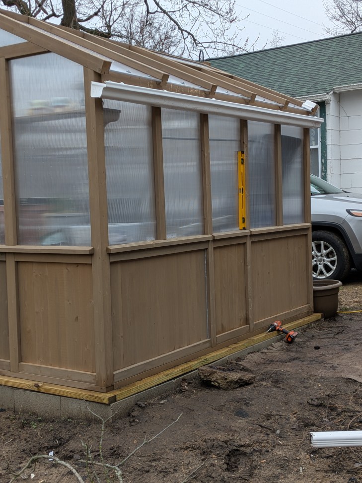 The Costco greenhouse is made by Yardistry, and while it’s a great structure, it doesn’t come with gutters. So in my ongoing effort to make the Farm at the Not So Seekrit Lair a little more sustainable, today I installed gutters on my Costco greenhouse.